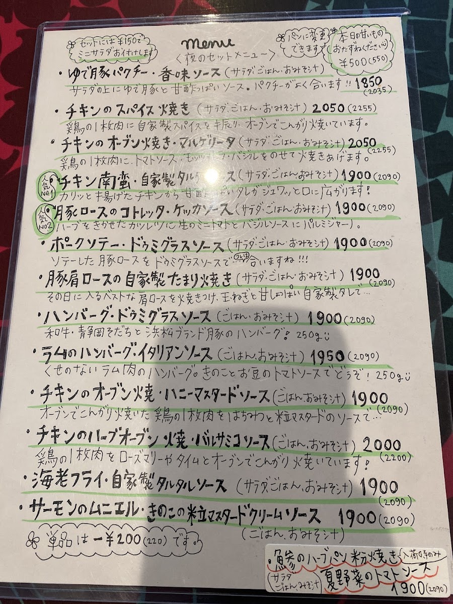 At Misato Kitchen, the menu offers a refined balance of classic Japanese flavors with a Western-inspired twist. The standout チキン南蛮自家製タルタルソース delights with its crispy coating and rich, homemade tartar sauce, while 鯵のハーブパン粉焼き 夏野菜のトマトソース brings a light, herbaceous finish complemented by vibrant summer vegetables in a tangy tomato sauce. For meat lovers, 豚ロースのコトレッタ ケッカソース delivers a perfectly cooked pork cutlet with a fresh, aromatic sauce, and ゆ で 豚 の 油 淋鶏 impresses with tender, boiled pork in a fragrant, slightly sweet dressing. The 煮込みハンバーグランチ offers a comforting, slow-simmered hamburger steak, and the スパゲッティ selections showcase well-executed, flavorful pasta dishes. Every meal is thoughtfully paired with セットの サラダ, providing crisp freshness that balances the richer entrees. Overall, the menu at Misato Kitchen demonstrates careful attention to ingredients and presentation, offering a satisfying variety that caters to both Japanese and Western palates, making it a memorable dining experience in Hamamatsu.